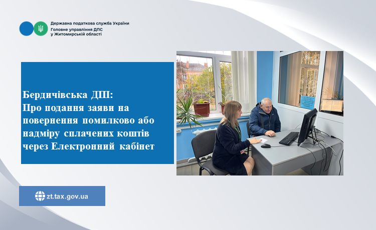 Фахівці Бердичівської ДПІ звертають увагу платників податків на те, що функціонал Електронного кабінету дає змогу зручно та безконтактно створити та подати заяву про повернення помилково та/або надміру сплачених грошових зобов’язань і пені до територіальних органів ДПС. Така можливість реалізована у режимі «Введення звітності».