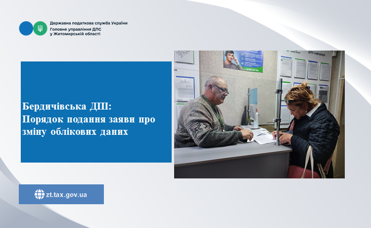 Фахівці Бердичівської ДПІ звертають увагу відвідувачів ЦОП на те, що громадяни зобов'язані подавати органам ДПС відомості про зміну особистих даних, які вносяться до Облікової картки (зміна прізвища, ім’я, по батькові, нумерації будинків, перейменування вулиць) протягом місяця з дня виникнення таких змін за ф. № 5ДР.