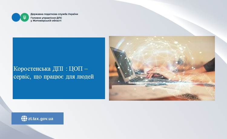 ЦОП працюють за принцом «єдиного вікна», що забезпечує швидке та якісне обслуговування. Працівники ЦОП Коростенської ДПІ завжди надають вичерпні консультації та допомагають коректно оформити документи.