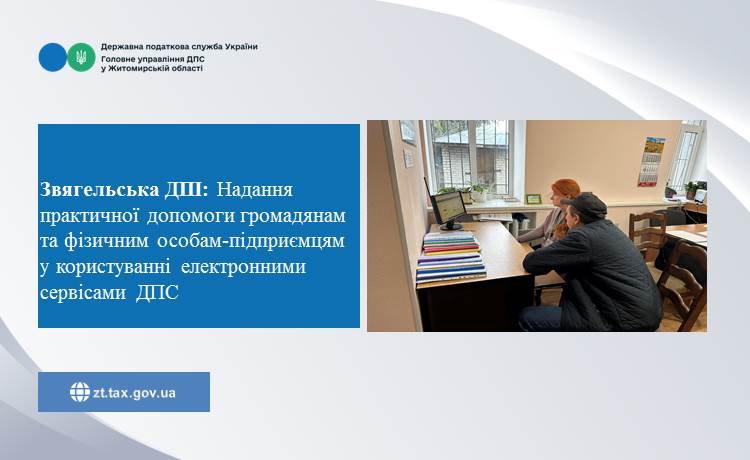 Фахівці Центрів обслуговування платників Звягельської ДПІ щодня надають практичну допомогу громадянам та фізичним особам-підприємцям у користуванні електронними сервісами ДПС.
