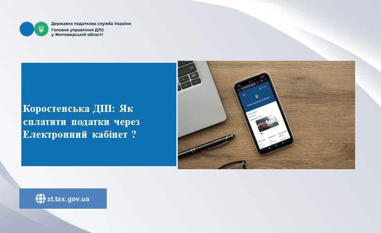 Коростенська ДПІ звертає увагу платників, що в меню «Стан розрахунків з бюджетом» приватної частини Електронного кабінету має доступ до своїх особових рахунків із сплати податків, зборів та інших платежів. При зверненні до зазначеного меню відображається зведена інформація станом на момент звернення, що містить інформацію по кожному виду платежу, зокрема, бюджетний рахунок на поточну дату.