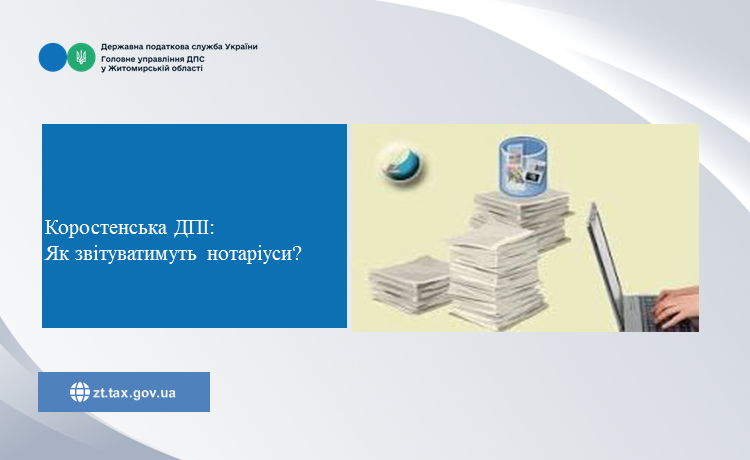 Коростенська ДПІ повідомляє, що з 1 січня 2026 року про посвідчені договори та видані свідоцтва про спадщину приватні нотаріуси звітувати-муть щоквартально (з деталізацією по місяцях звітного квартал) , а державні – щомісячно.