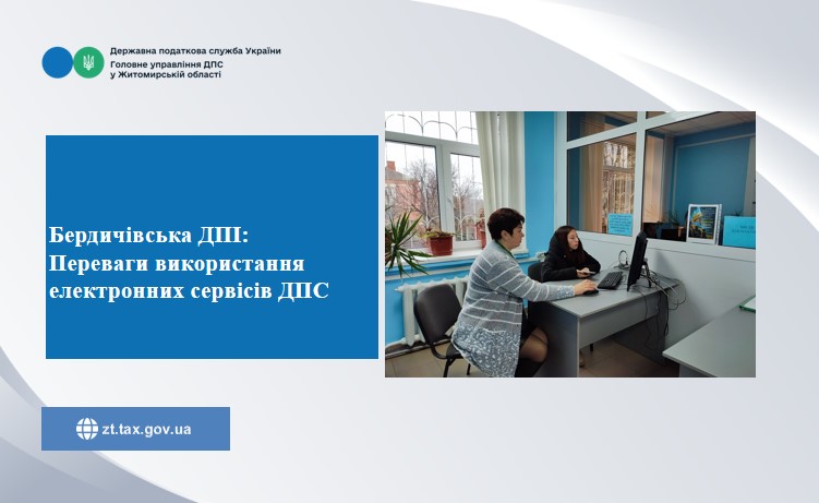 Фахівці Бердичівської ДПІ звертають увагу відвідувачів ЦОП на переваги використання електронних сервісів ДПС, зокрема, Електронного кабінету платника, який пропонує понад 130 сервісів, які дозволяють суб’єктам господарювання та громадянам отримувати податкові послуги не виходячи з дому, в режимі онлайн. Даний сервіс безкоштовний, працює цілодобово та не потребує встановлення додаткового програмного забезпечення.