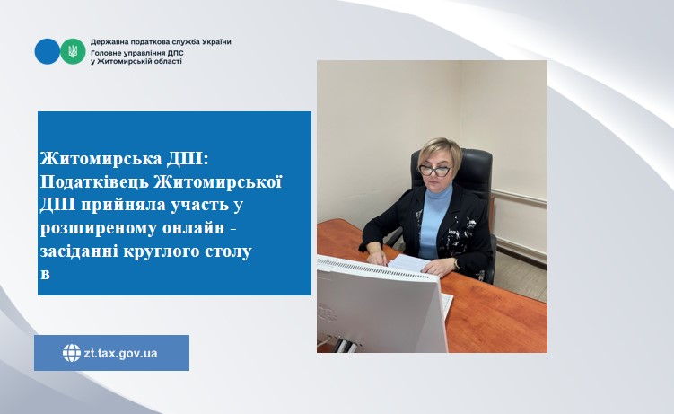 Житомирська ДПІ: Податківець Житомирської ДПІ прийняла участь у розширеному онлайн -засіданні круглого столу