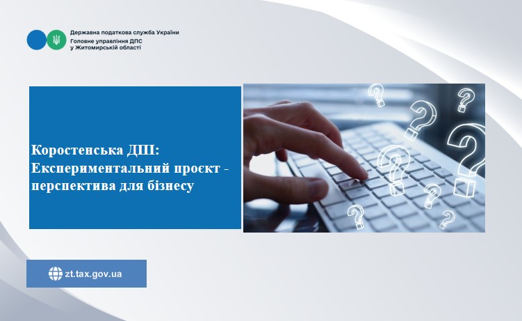 Коростенська ДПІ нагадує про впровадження Експериментального проекту щодо функціонування системи управління податковими ризиками, основою для реалізації якого стала постанова Кабінету Міністрів України від 25 липня 2024 року № 854 "Про реалізацію експериментального проекту щодо функціонування системи управління податковими ризиками (комплаєнс-ризиками) в Державній податковій службі" (далі – Постанова № 854.