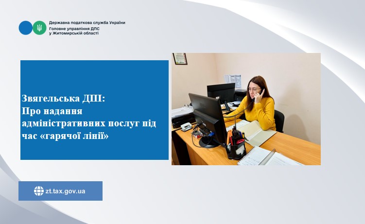 На питання платників щодо надання деяких адміністративних послуг під час сеансу «гарячої телефонної лінії» головний державний інспектор відділу надання адміністративних послуг, організації роботи та документообігу Звягельської ДПІ ГУ ДПС у Житомирській області Світлана Швець.