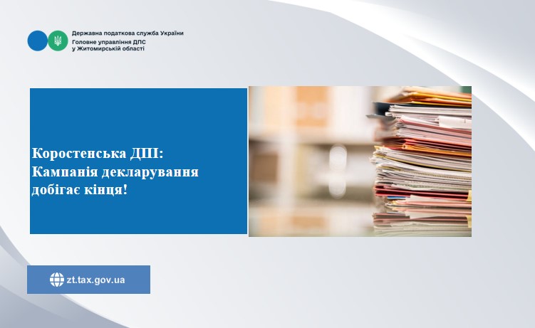 Коростенська ДПІ нагадують громадянам, що до завершення кампанії декларування залишилося обмаль часу .