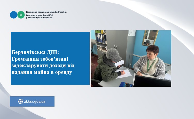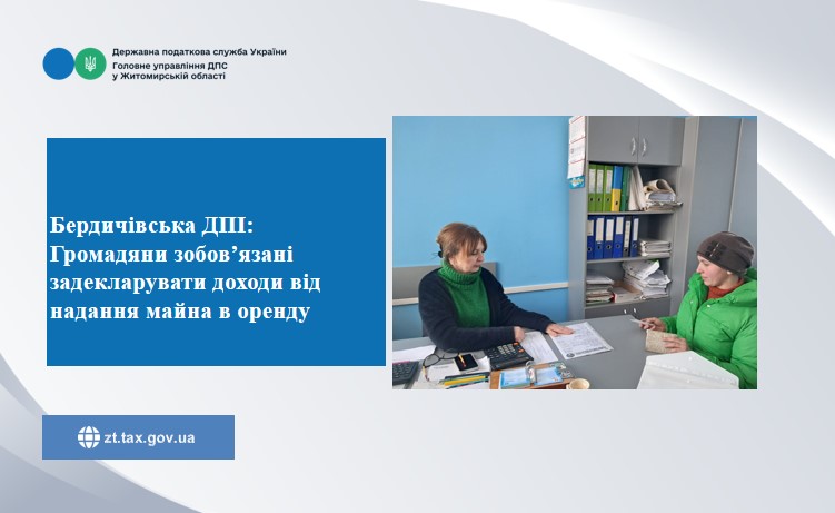 Фахівці Бердичівської ДПІ нагадують громадянам, які здають в оренду житлову чи іншу нерухомість та рухоме майно, про обов’язок задекларувати отримані доходи. Відповідно до норм Податкового кодексу декларуванню підлягають доходи, отримані від надання в оренду житлових приміщень, гаражів, дачних будинків, присадибних та інших земельних ділянок. Якщо нерухомість або інше майно орендує юридична особа або фізична особа – підприємець, то податковим агентом є орендар. Він і повинен утримати та перерахувати до бюджету податок на доходи фізичних осіб за ставкою 18 відсотків та військовий збір за ставкою 5 відсотків. Якщо ж нерухомість орендує фізична особа, то ПДФО та військовий збір сплачує власник майна.