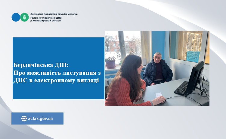 Фахівці Бердичівської ДПІ на постійній основі звертають увагу відвідувачів ЦОП, що листування контролюючих органів з платниками податків, визначеними пунктом 42.4 статті 42 Податкового кодексу України, які подали заяву про бажання отримувати документи через Електронний кабінет, здійснюється засобами електронного зв’язку в електронній формі. Документи надсилаються безпосередньо до Електронного кабінету платника з одночасним інформуванням на електронну адресу про вид документа, дату та час його надсилання.