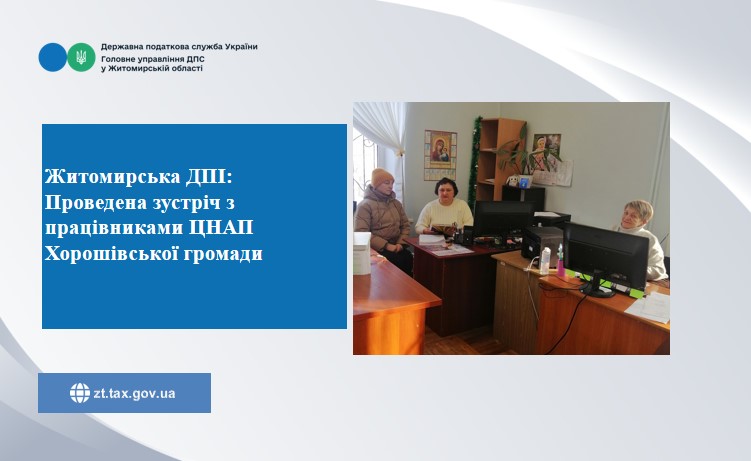 Житомирська ДПІ: Проведена зустріч з працівниками ЦНАП Хорошівської громади