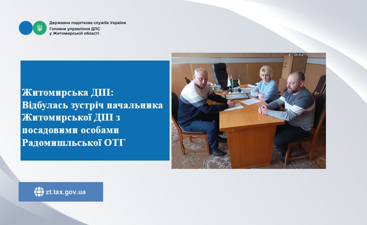 Начальник Житомирської ДПІ Анжеліка Бевза провела робочу зустріч з секретарем Радомишльської міської ради Олександром Потієнком щодо актуальних питань податкового законодавства.