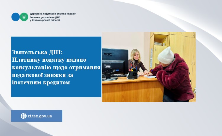 Звягельська ДПІ: Платнику податку надано консультацію щодо отримання податкової знижки за іпотечним кредитом