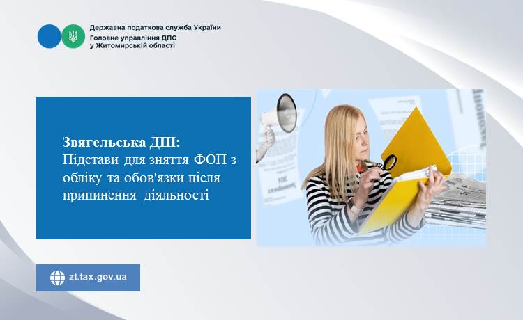 Згідно з вимогами податкового законодавства, підставою для зняття ФОП з обліку у контролюючих органах є отримання інформації про державну реєстрацію припинення підприємницької діяльності. Така інформація повинна містити номер і дату внесення відповідного запису до Єдиного державного реєстру юридичних осіб, фізичних осіб — підприємців та громадських формувань.