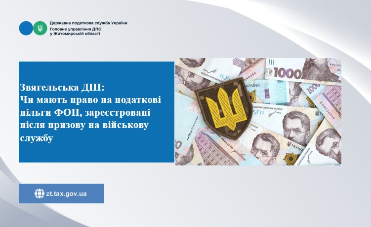 Звягельська ДПІ ГУ ДПС у Житомирській області надає роз’яснення щодо особливостей оподаткування фізичних осіб – підприємців (ФОП), які проходять військову службу. Зокрема, розглядається питання права на пільги для осіб, які зареєстрували підприємницьку діяльність уже після призову за мобілізацією або укладення контракту.