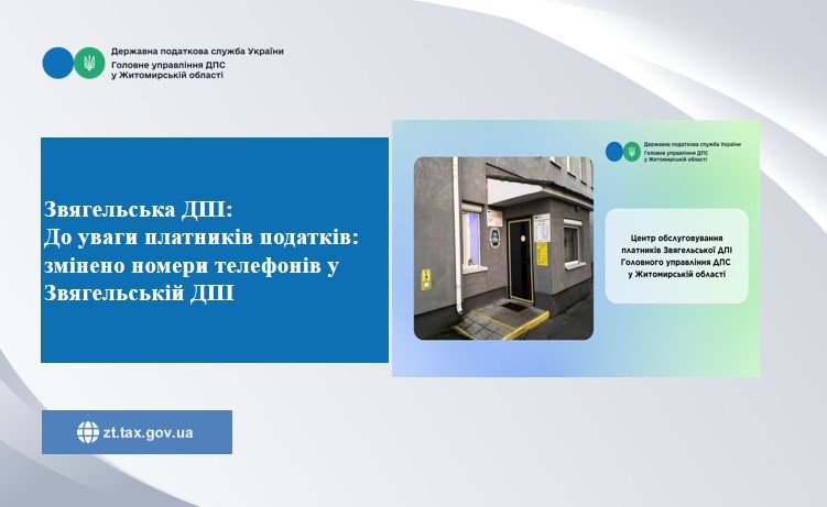 Звягельська державна податкова інспекція Головного управління ДПС у Житомирській області інформує про зміну контактних номерів телефонів.
