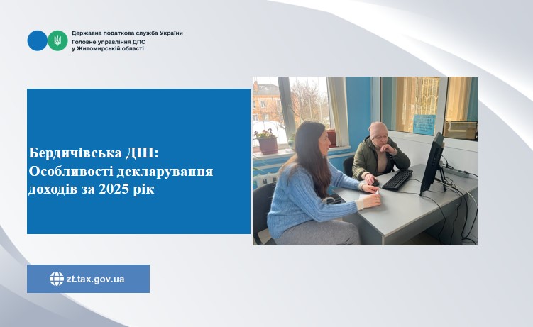 Фахівці Бердичівської ДПІ проводять роз’яснювальну роботу для відвідувачів ЦОП щодо застосування норм податкового законодавства. Особливу увагу звертають на порядок декларування доходів, отриманих у 2025 році, і подання декларації через Електронний кабінет.