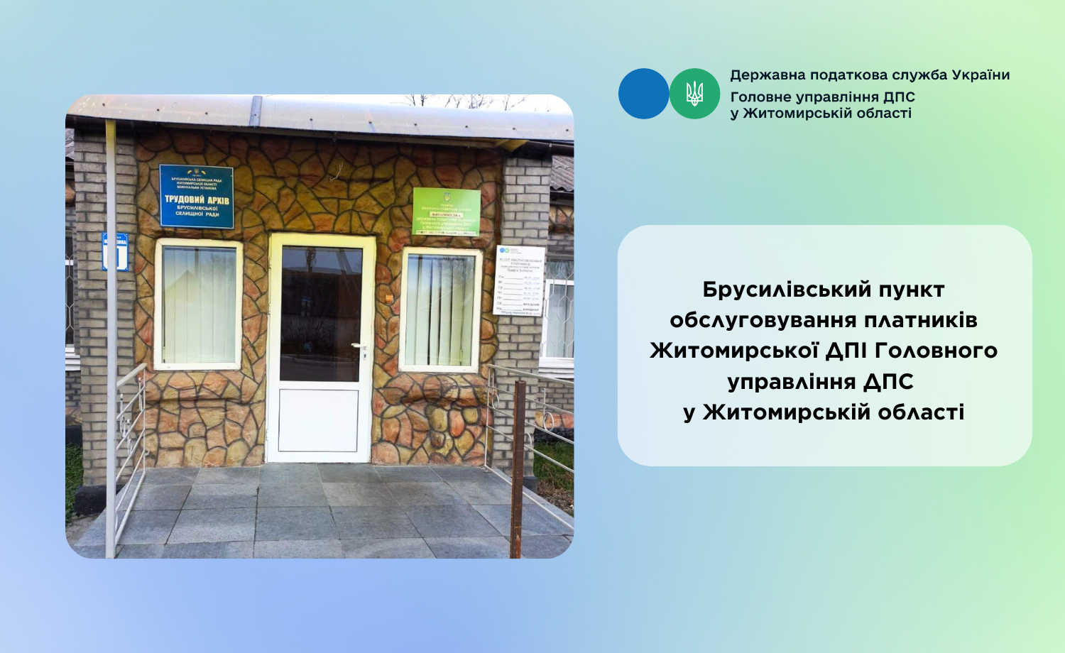 Житомирська ДПІ Головного управління ДПС у Житомирській області повідомляє, що Брусилівський пункт обслуговування платників