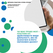 Отже, фізична особа – підприємець – платник єдиного податку не має права здійснювати в межах підприємницької діяльності такі види діяльності, які не зазначені в його облікових даних.