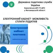 Баранівська ДПІ: «Електронний кабінет» – можливість сплати податків та зборів