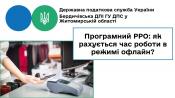 Роботу в режимі офлайн суб’єкт господарювання може контролювати шляхом сумування періодів часу, протягом якого ПРРО перебував у режимі офлайн: від дати та часу, що зазначаються у Повідомленні за ф. № 4-ПРРО з відміткою «початок переведення ПРРО в режим офлайн» до дати та часу, зазначених у Повідомленні за ф. № 4-ПРРО «завершення режиму офлайн».