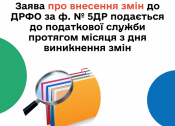 Відповідно до п. 70.7 ст. 70 Податкового кодексу України від 02 грудня 2010 року № 2755-VI із змінами та доповненнями та п. 1 розд. IХ Положення про реєстрацію фізичних осіб у Державному реєстрі фізичних осіб – платників податків, затвердженого наказом Міністерства фінансів України від 29.09.2017 № 822 із змінами та доповненнями (далі – Положення № 822) фізичні особи – платники податків зобов’язані подавати до контролюючих органів (далі – податкові органи) відомості про зміну даних, які вносяться до облікової картки фізичної особи – платника податків протягом місяця з дня виникнення таких змін шляхом подання заяви про внесення змін до Державному реєстрі фізичних осіб – платників податків за формою № 5ДР (далі – Заява за ф. № 5ДР) (додаток 12 до Положення №822).