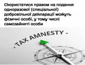 Таким чином, скористатися правом на подання одноразової (спеціальної) добровільної декларації можуть фізичні особі, у тому числі самозайняті особи.