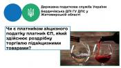 Бердичівська ДПІ інформує, що відповідно до п.п. 212.1.11 ст. 212 Податкового кодексу України від 02 грудня 2010 року № 2755-VI із змінами та доповненнями (далі – ПКУ) платником акцизного податку є особа - суб’єкт господарювання роздрібної торгівлі, яка здійснює реалізацію підакцизних товарів.