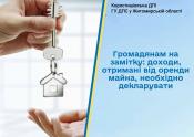 Коростишівська ДПІ: Громадянам на замітку: доходи, отримані від оренди майна, необхідно декларувати