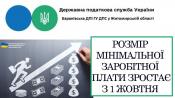 Баранівська ДПІ ГУ ДПС у Житомирській області повідомляє платникам податків, що з 1 жовтня 2022 року згідно із Законом України від 02.12.2021 року № 1928 «Про Державний бюджет на 2022 рік» розмір мінімальної заробітної плати становить: