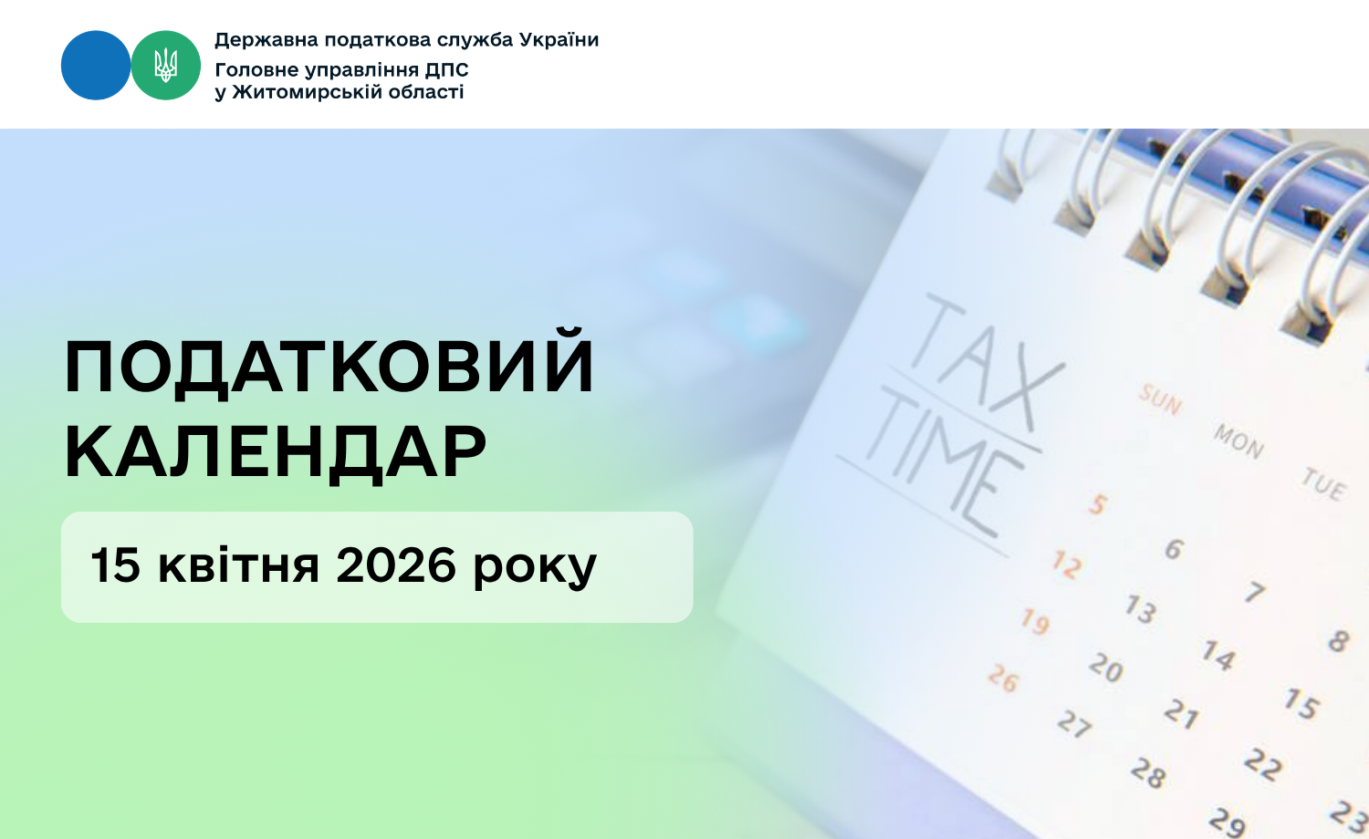 Головне управління ДПС у Житомирській області звертає увагу, що 15 квітня 2026 року, середа, останній день подання за березень п. р.: