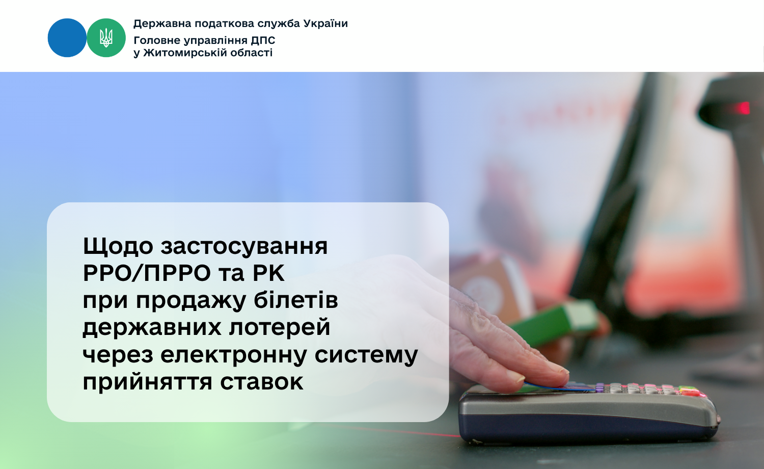 Щодо застосування РРО / ПРРО та РК при продажу білетів державних лотерей через електронну систему прийняття ставок