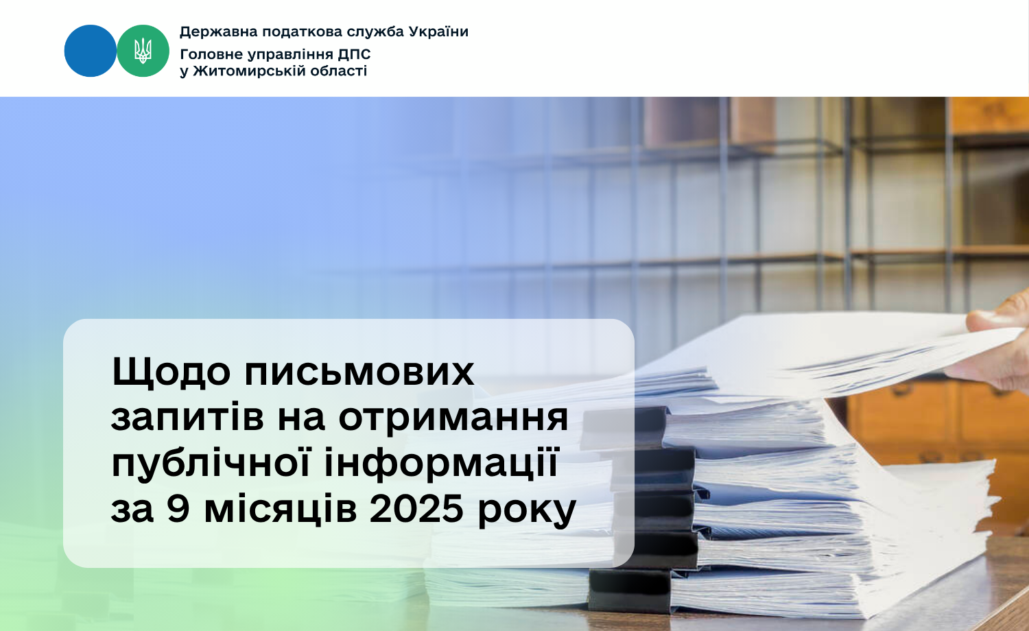 Протягом січня-вересня 2025 року до Головного управління ДПС у Житомирській області (далі – ГУ ДПС) надійшло 109 письмових запитів на отримання публічної інформації, у тому числі: