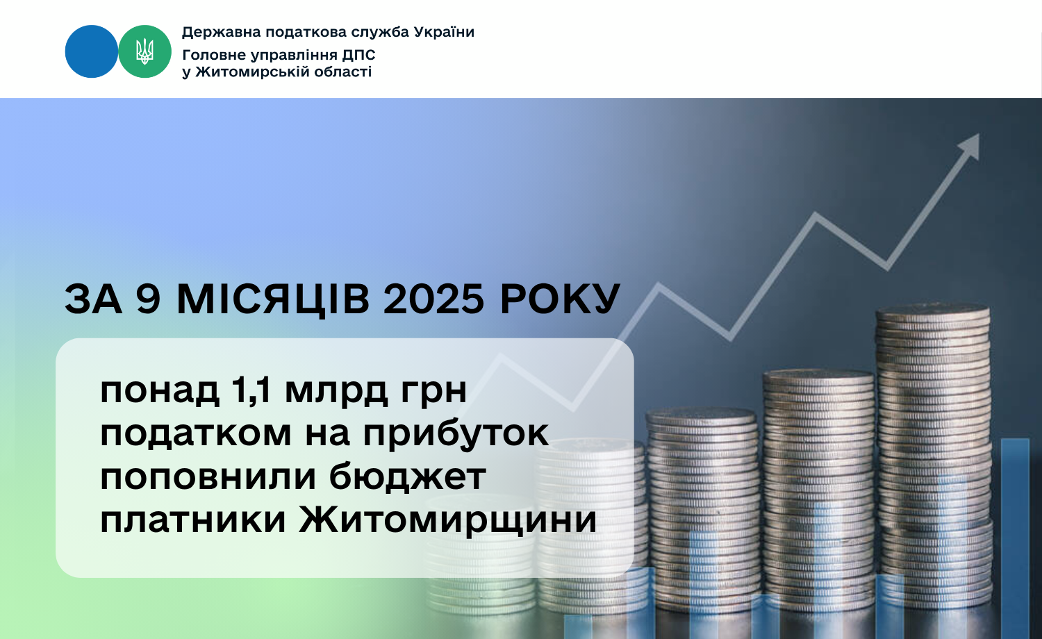 Платники Житомирщини поповнили бюджет понад 1,1 млрд гривень податком на прибуток