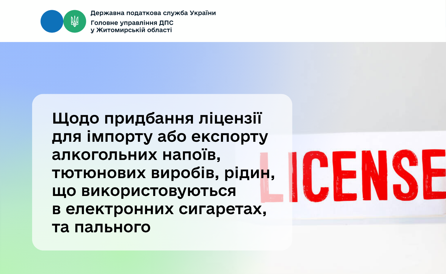 Щодо придбання ліцензії для імпорту або експорту алкогольних напоїв, тютюнових виробів, рідин, що використовуються в електронних сигаретах, та пального