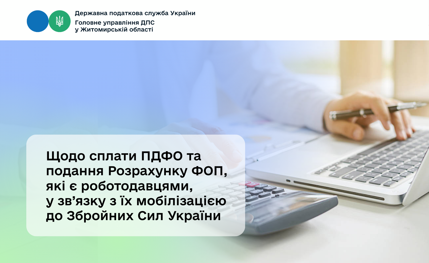 Головне управління ДПС у Житомирській області повідомляє, що відповідно до п. 25 підрозд. 10 розд. ХХ «Перехідні положення» Податкового кодексу України від 02 грудня 2010 року № 2755-VI (далі – ПКУ) самозайняті особи (фізичні особи – підприємці, особи, які провадять незалежну професійну діяльність), які мали або не мали найманих працівників, призвані на військову службу під час мобілізації або залучені до виконання обов’язків щодо мобілізації за посадами, передбаченими штатами воєнного часу, під час особливого періоду, визначеного Законом України від 21 жовтня 1993 року № 3543-ХII «Про мобілізаційну підготовку та мобілізацію», або за контрактом, на весь період їхньої військової служби (з першого числа місяця, в якому особу призвано на військову службу або в якому з особою укладено контракт, але не раніше 24.02.2022, до останнього дня місяця, в якому особу демобілізовано (звільнено з військової служби) звільняються від обов’язку нарахування, сплати та подання податкової звітності з податку на доходи фізичних осіб відповідно до розд. IV ПКУ, звільняються від обов’язку нарахування, сплати та подання податкової звітності з єдиного податку відповідно до глави 1 розд. XIV ПКУ, а також звільняються від обов’язку нарахування, сплати та подання звітності з військового збору у складі податкової звітності з податку на доходи фізичних осіб або єдиного податку відповідно до п. 16 прим. 1 підрозд. 10 розд. ХХ «Перехідні положення» ПКУ.