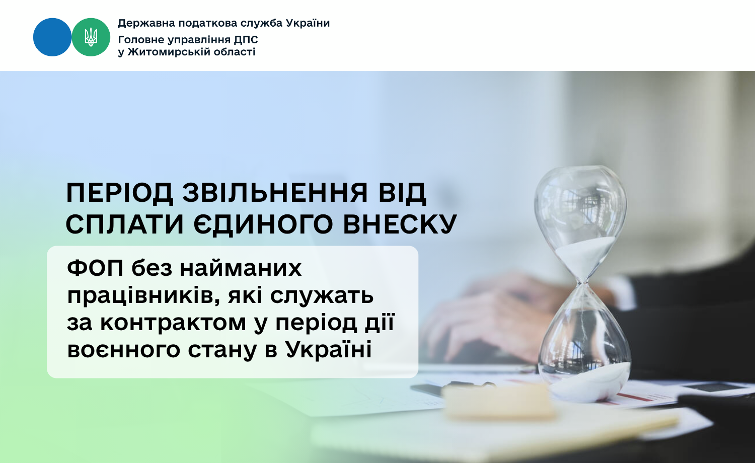 Період звільнення від сплати єдиного внеску ФОП без найманих працівників, які служать за контрактом у період дії воєнного стану в Україні