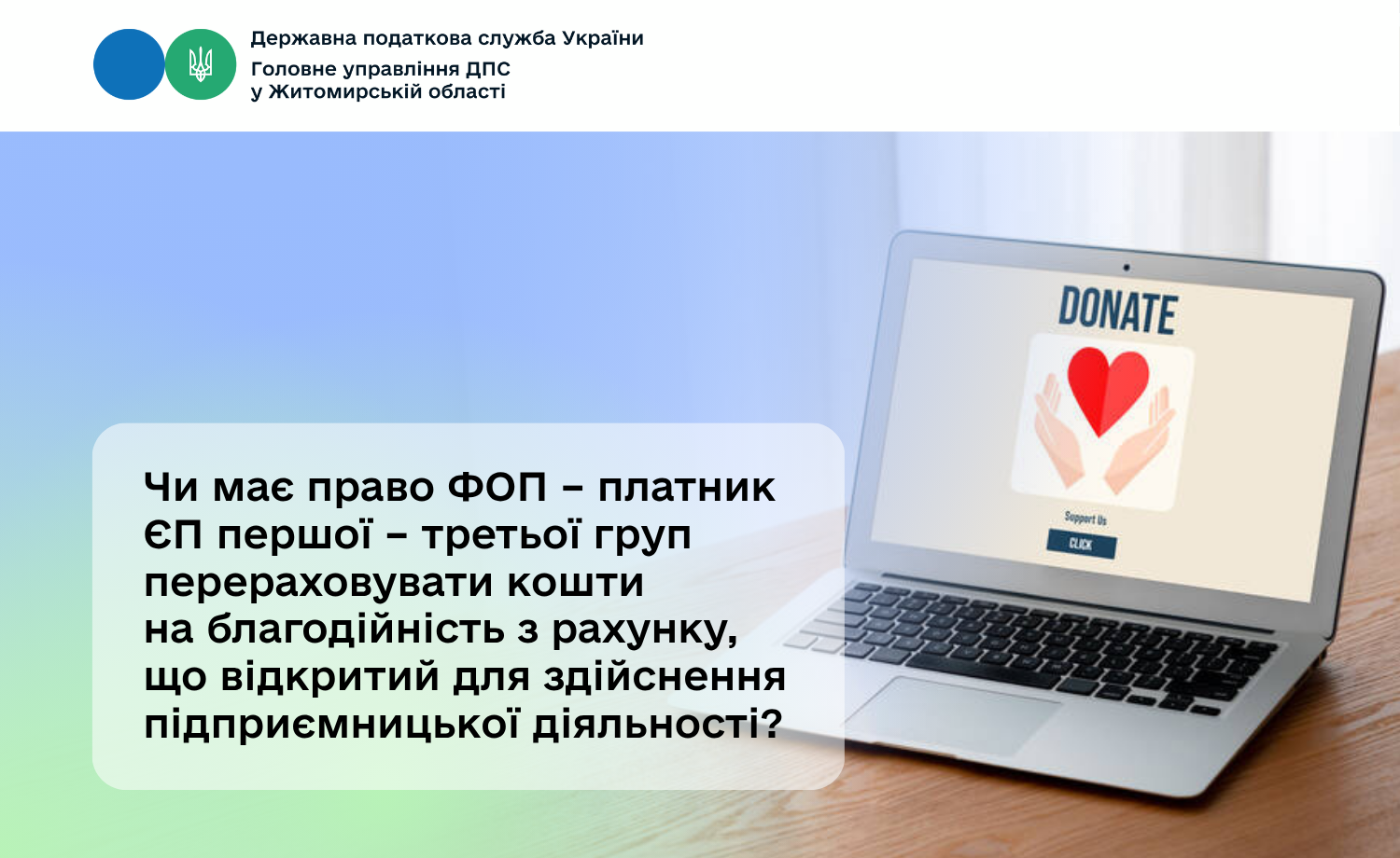 Чи має право ФОП – платник ЄП першої – третьої груп перераховувати кошти на благодійність з рахунку, що відкритий для здійснення підприємницької діяльності?