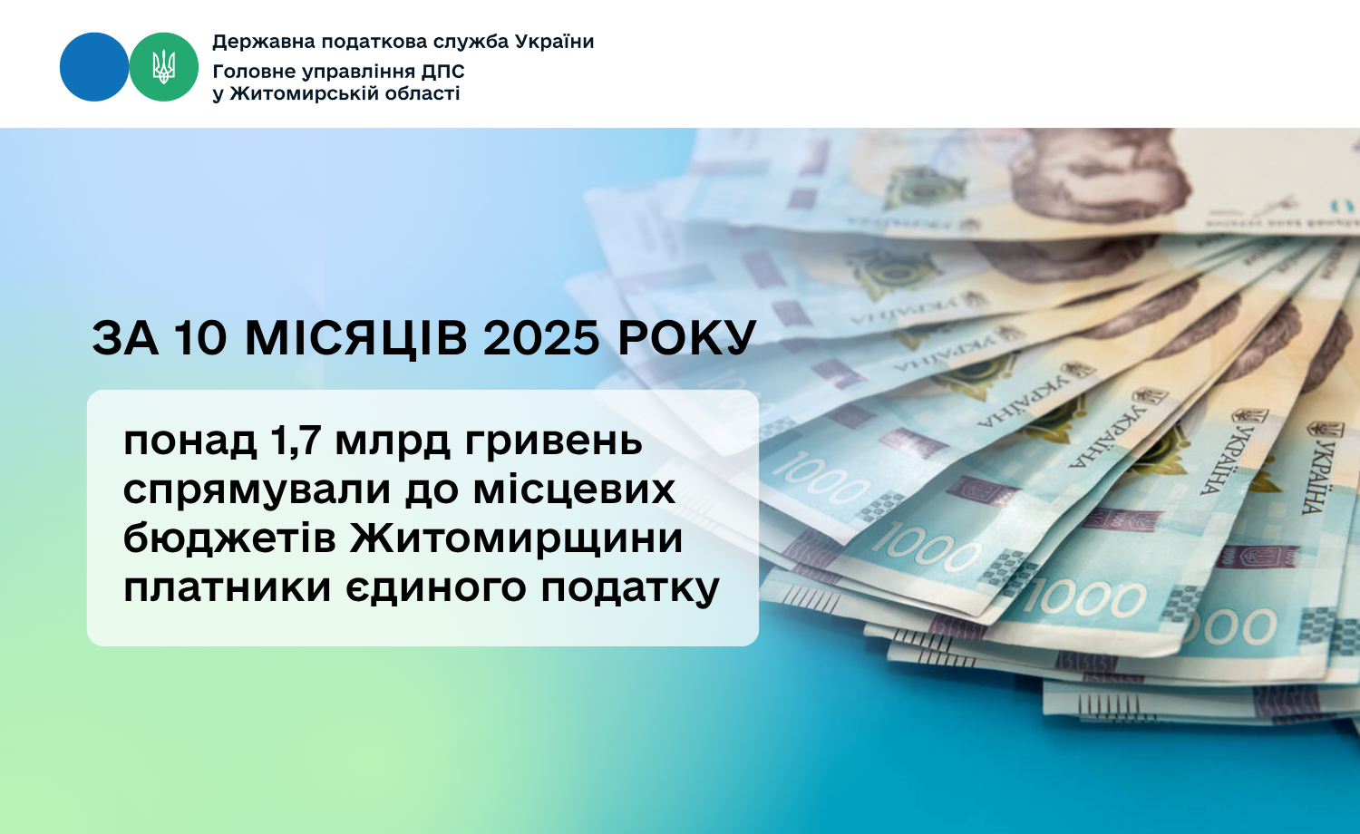 Платники єдиного податку спрямували до місцевих бюджетів Житомирщини понад 1,7 млрд гривень