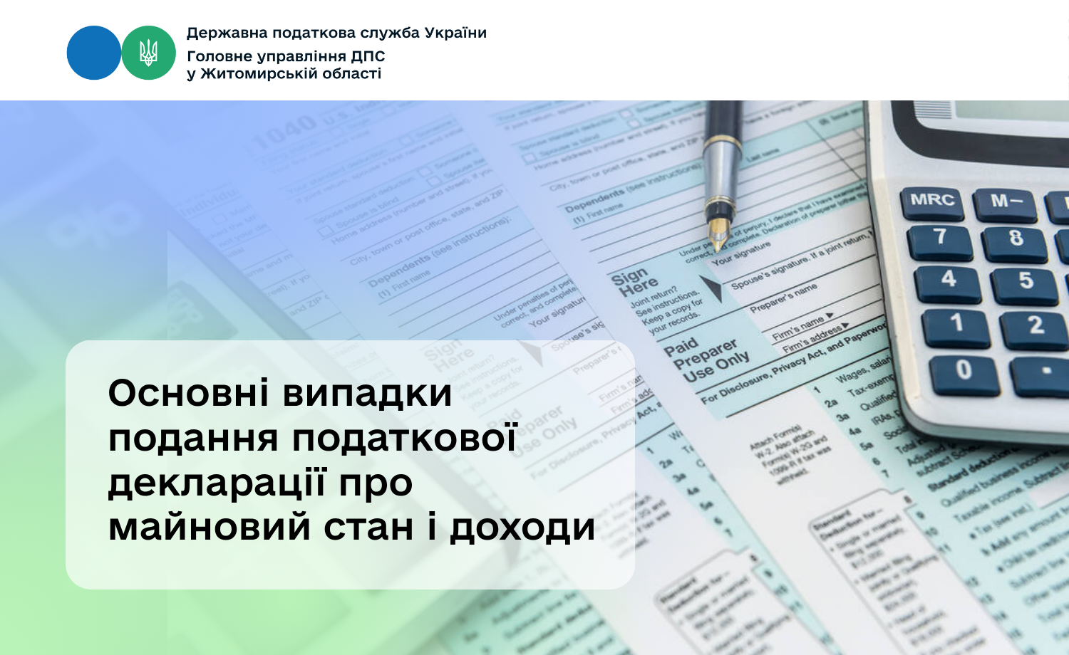 Головне управління ДПС у Житомирській області нагадує, що нормами розділу IV «Податок на доходи фізичних осіб» Податкового кодексу України (ПКУ) визначені випадки подання платниками податків податкової декларації про майновий стан і доходи (далі – Декларація).