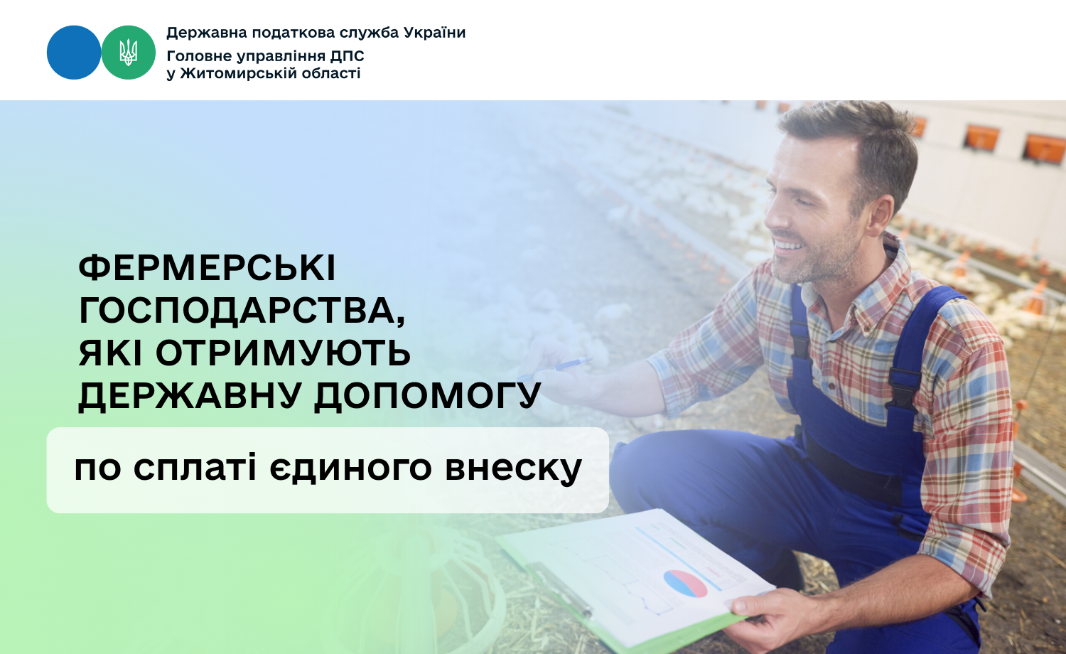 Головне управління ДПС у Житомирській області повідомляє, що відповідно до п. 13 прим. 1.1 ст. 13 прим. 1 Закону України від 26 червня 2004 року № 1877-ІV «Про засади державної аграрної політики та державної політики сільського розвитку» сімейним фермерським господарствам, які зареєстровані платниками єдиного податку четвертої групи згідно із главою 1 розд. XIV Податкового кодексу України від 02 грудня 2010 року № 2755-VI, надається додаткова фінансова підтримка через механізм доплати на користь застрахованих осіб – членів / голови сімейного фермерського господарства єдиного внеску на загальнообов’язкове державне соціальне страхування (далі – єдиний внесок) у сумі: