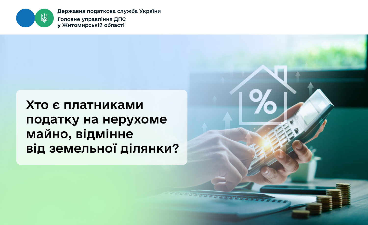 Головне управління ДПС у Житомирській області повідомляє, що відповідно до п.п. 266.1.1 п. 266.1 ст. 266 Податкового кодексу України від 02 грудня 2010 року № 2755-VI (далі – ПКУ) платниками податку на нерухоме майно, відмінне від земельної ділянки, є фізичні та юридичні особи, в тому числі нерезиденти, які є власниками житлової та/або нежитлової нерухомості.