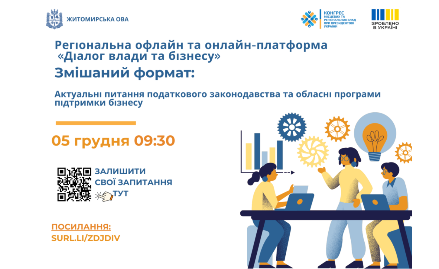 05 грудня о 09:30 у рамках проєкту «Діалог влади та бізнесу» відбудеться чергове засідання на тему: «Актуальні питання податкового законодавства та обласні програми підтримки бізнесу».