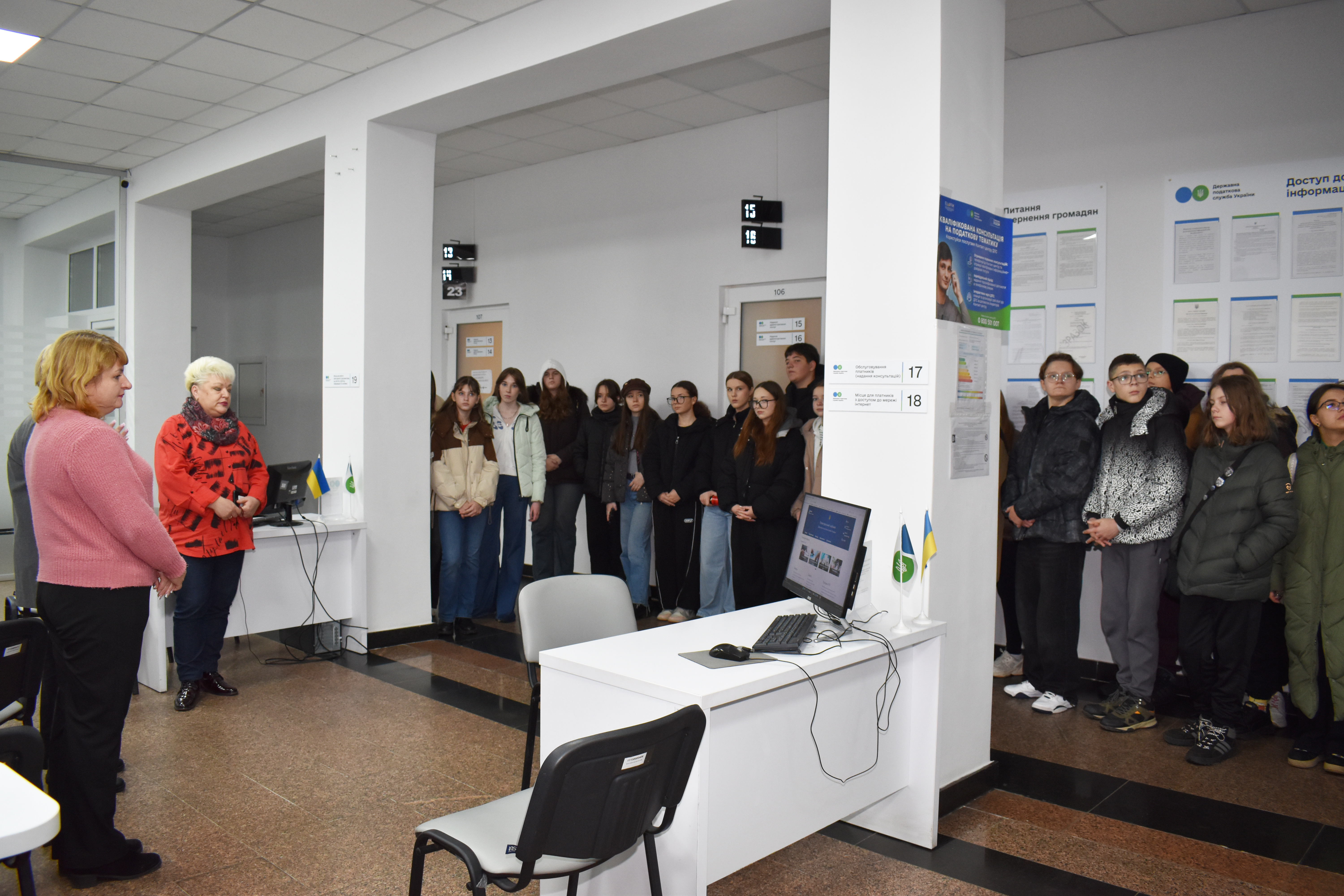 У рамках вивчення фінансової грамотності для восьмикласників Житомирського ліцею ім. В. Г. Короленка № 6 у Головному управлінні ДПС у Житомирській області провели пізнавальну екскурсію до Центру обслуговування платників Житомирської ДПІ та Офісу податкових консультантів.