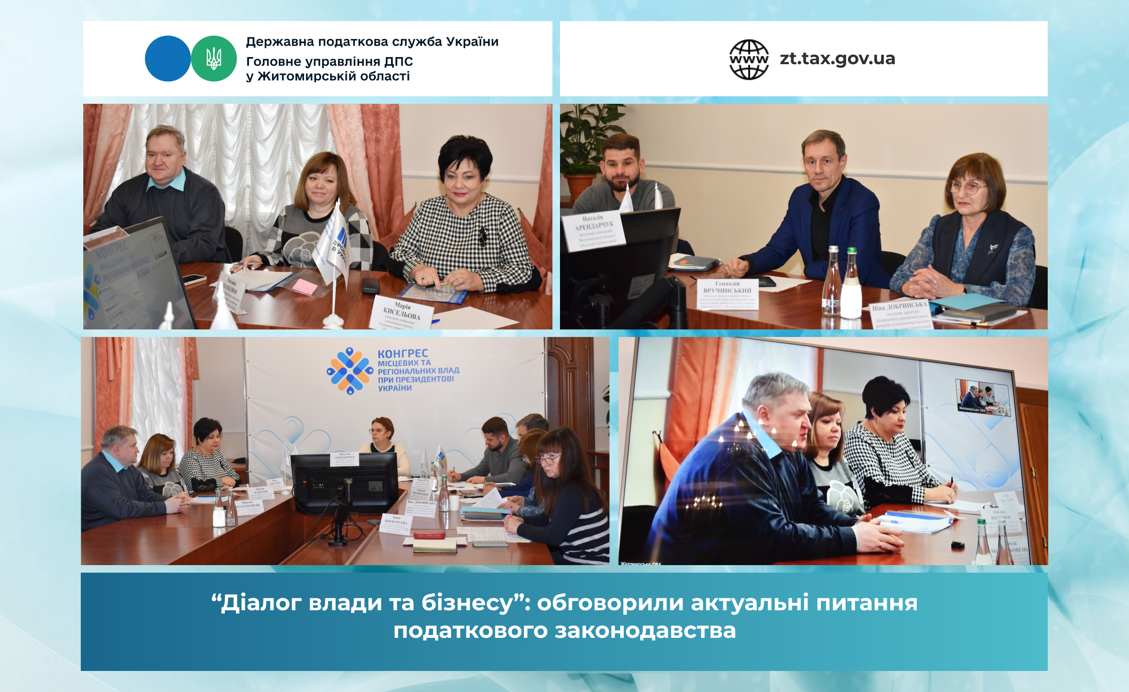 З метою забезпечення ефективної взаємодії між державою та бізнесом фахівці Головного управління ДПС у Житомирській області обговорили з представниками бізнесу актуальні питання податкового законодавства, зокрема, нарахування та сплату майнових податків, рентних платежів та екологічного податку; сучасні можливості та переваги електронних сервісів ДПС; роботу Офісу податкових консультантів; порядок взаєморозрахунків платників з бюджетом.