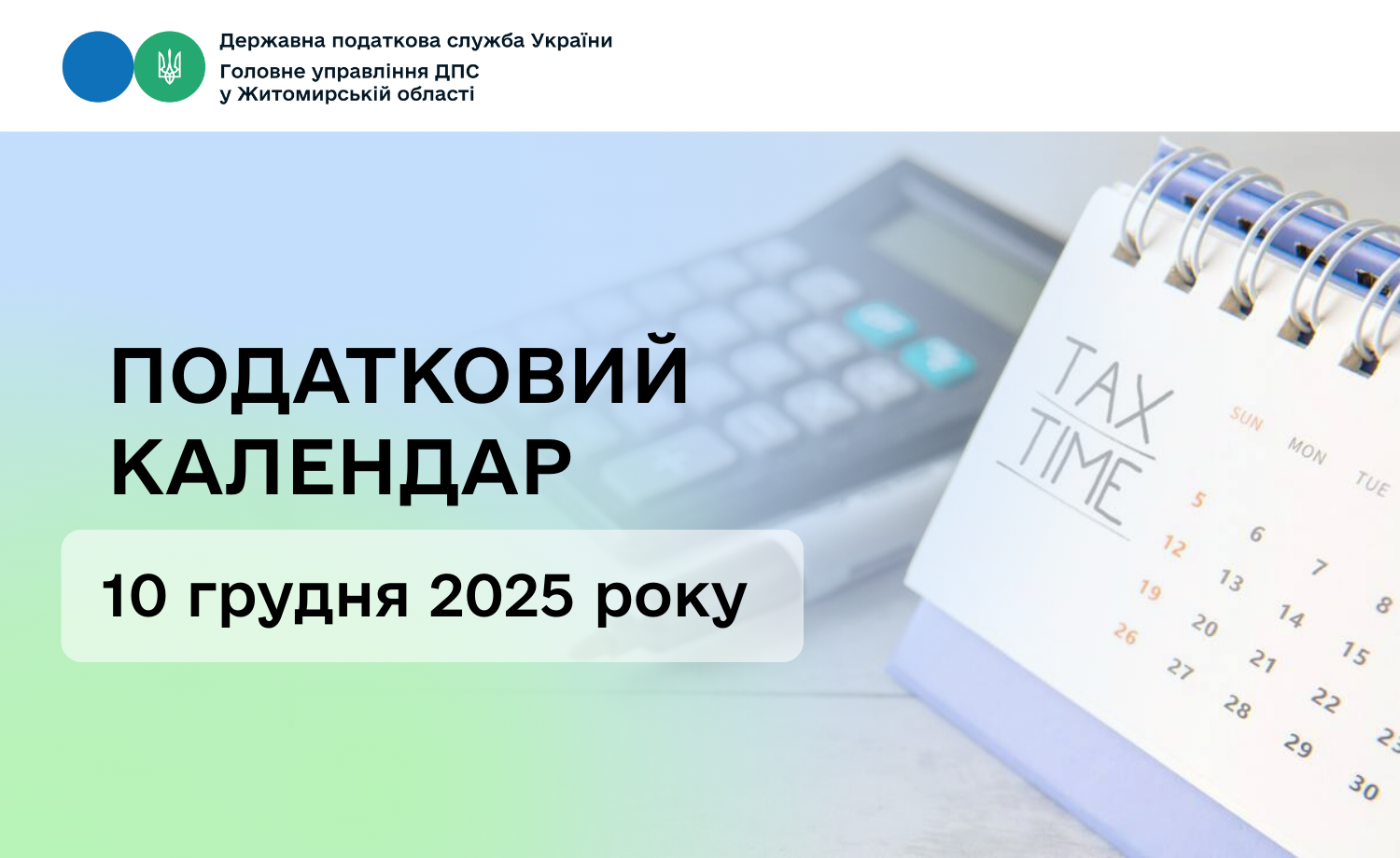 Головне управління ДПС у Житомирській області звертає увагу, що 10 грудня 2025 року, середа, останній день подання за листопад п. р.: