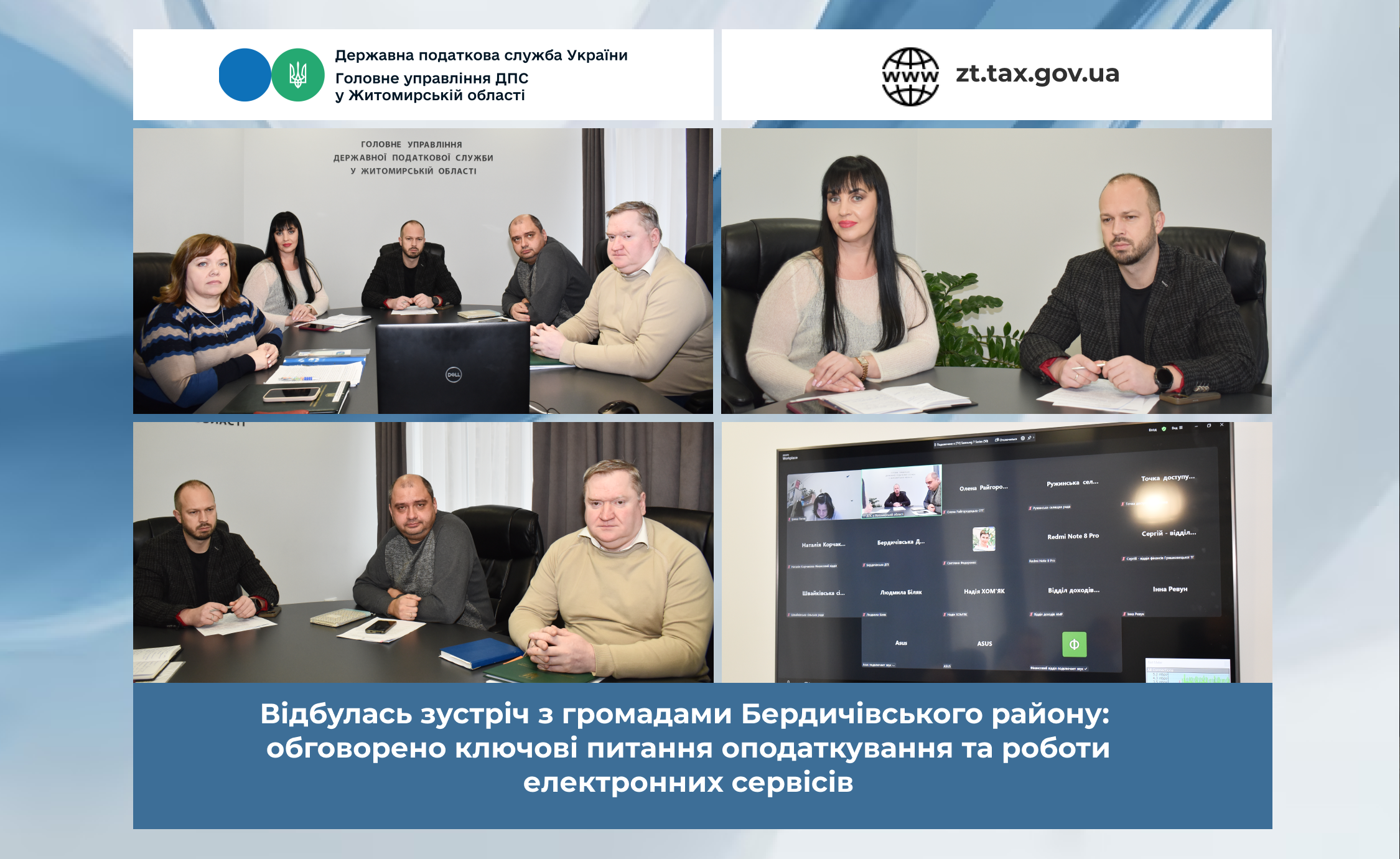 Сьогодні в Головному управлінні ДПС у Житомирській області (ГУ ДПС) відбулось засідання «круглого столу» з представниками територіальних громад Бердичівського району щодо актуальних питань податкового законодавства та взаємодії органів місцевого самоврядування з податковою службою. Захід зібрав керівників громад, фахівців фінансових підрозділів та фахівців ГУ ДПС.