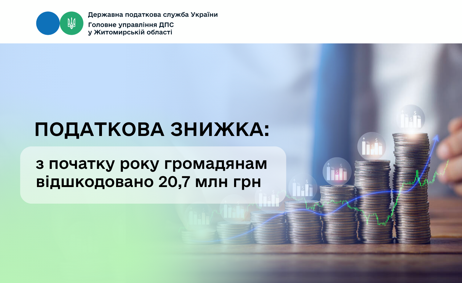 Головне управління ДПС у Житомирській області повідомляє що за 11 місяців 2025 року подано 4670 декларацій на право отримання податкової знижки за понесеними витратами минулого року. Задекларовано до відшкодування 20,8 млн гривень.