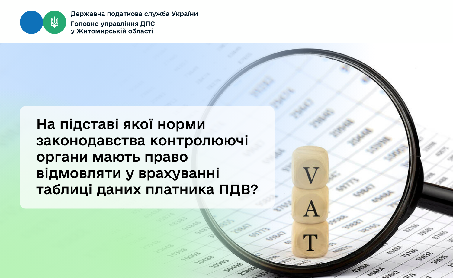 Головне управління ДПС у Житомирській області повідомляє, що постановою Кабінету Міністрів України від 11 грудня 2019 року № 1165 «Про затвердження порядків з питань зупинення реєстрації податкової накладної / розрахунку коригування в Єдиному реєстрі податкових накладних» (зі змінами), затверджено, зокрема, Порядок зупинення реєстрації податкової накладної / розрахунку коригування в Єдиному реєстрі податкових накладних (далі – Порядок зупинення).