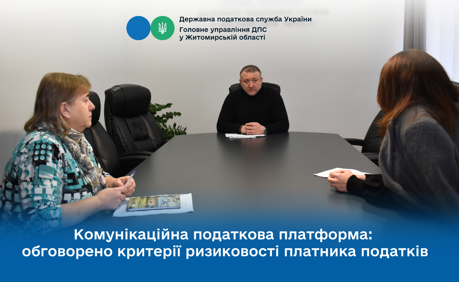Сьогодні в рамках діяльності Комунікаційної податкової платформи Головного управління ДПС у Житомирській області відбулася зустріч начальника управління з питань виявлення та опрацювання податкових ризиків Олександра Кириченка з представниками товариства, основним видом діяльності якого є змішане сільське господарство.