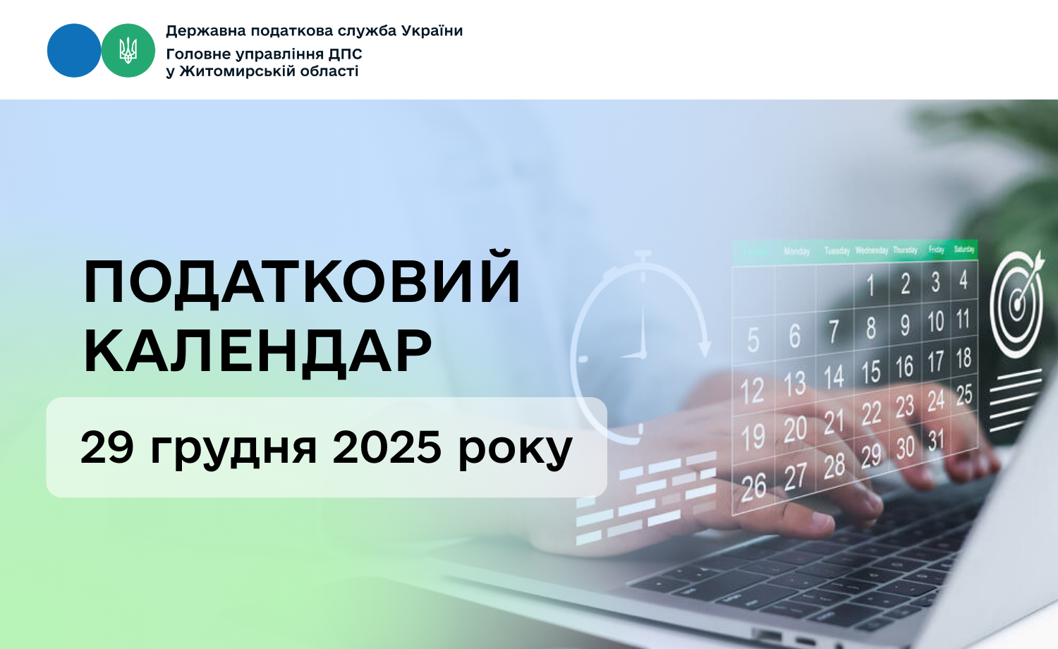 Головне управління ДПС у Житомирській області повідомляє, що 29 грудня 2025: